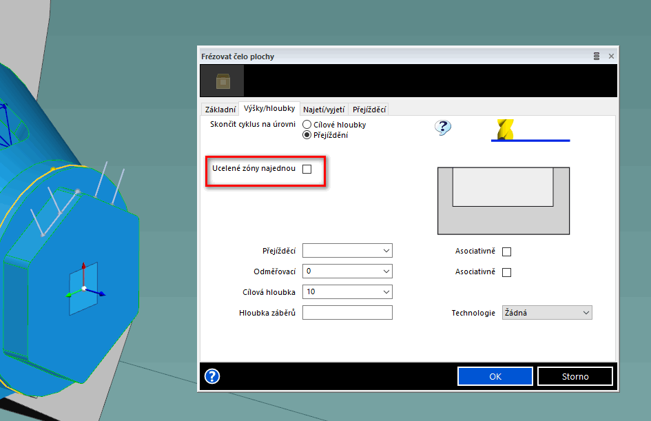Frézování čela plochy - nová volba - ucelené zóny najednou
