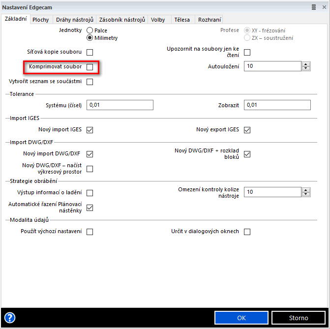 V nastavení přibyla funkce „Compress file“ neboli komprimovat soubor, která má za následek snížení rychlosti opakovaně spouštěného Simulátoru až o 70 %. EDGECAM vytvoří STL model součásti, který se stane součástí ukládaného PPF souboru.