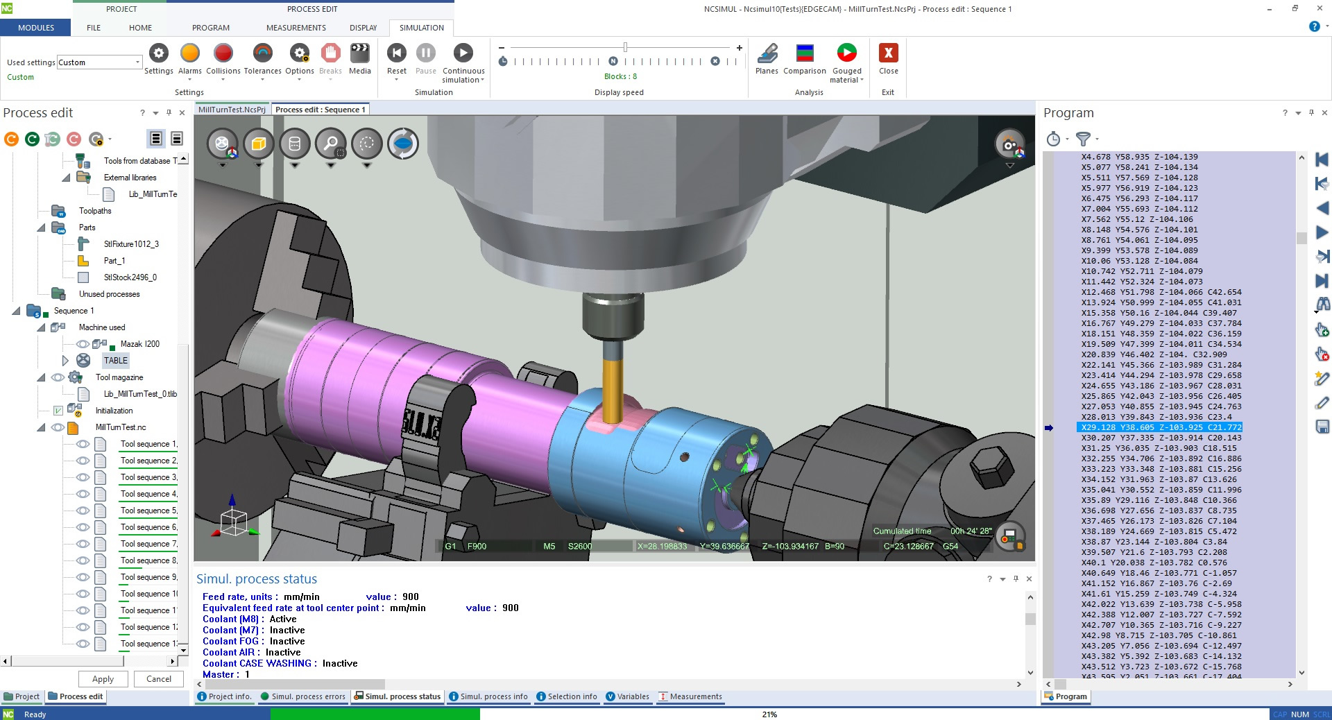 The complete machining process, from programming to part machining – including automatic reprogramming and ISO code simulation, is validated using the NCSIMUL software suite.